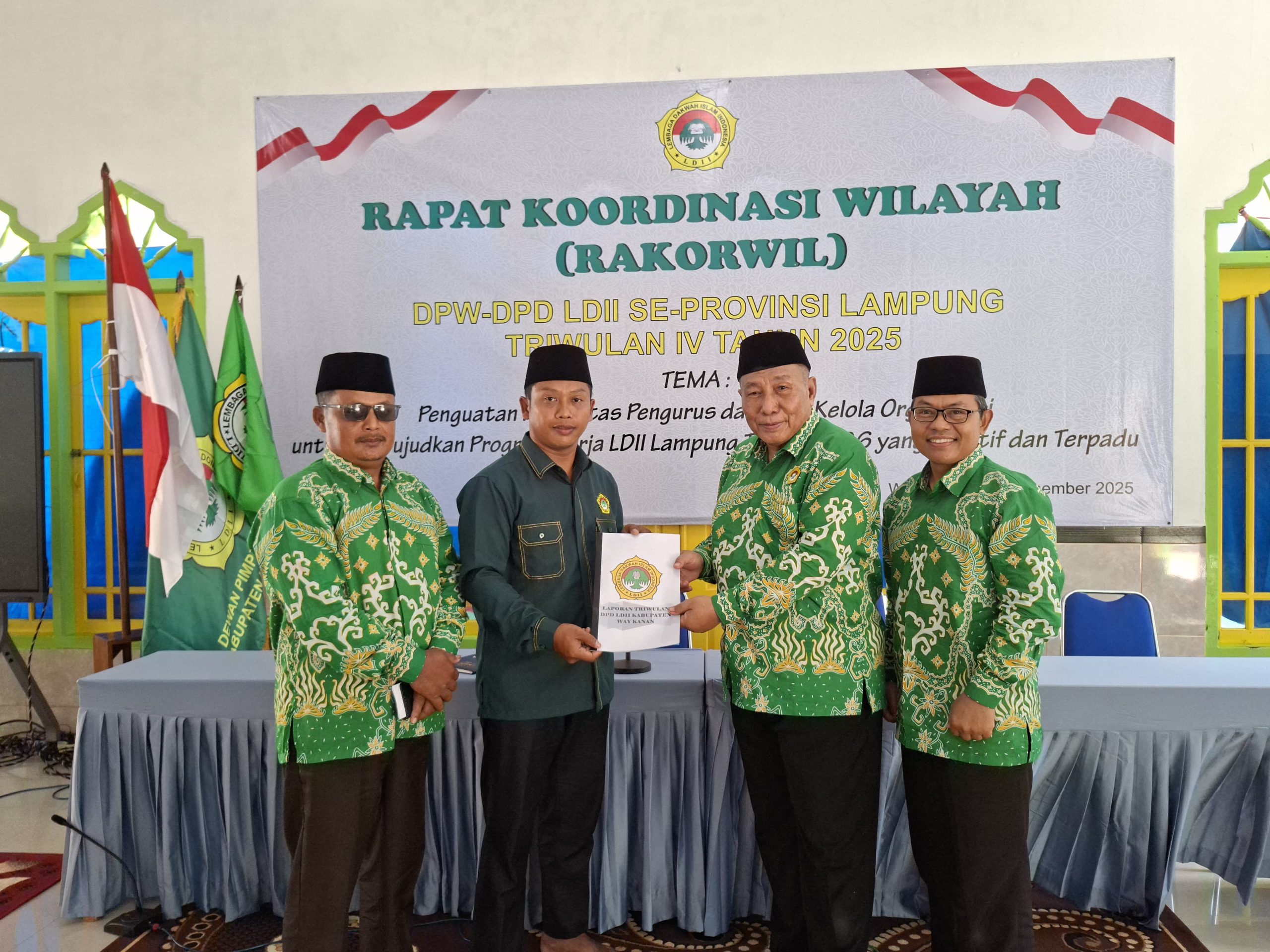 Logika.i-news.site.Way kanan, – Dewan Pimpinan Daerah (DPD) Lembaga Dakwah Islam Indonesia (LDII) Kabupaten Way Kanan menghadiri kegiatan Rapat Koordinasi Wilayah (Rakorwil) LDII se-Provinsi Lampung Triwulan IV Tahun 2025 yang digelar di Way Jepara, Lampung Timur, pada Sabtu (21/12/2025).