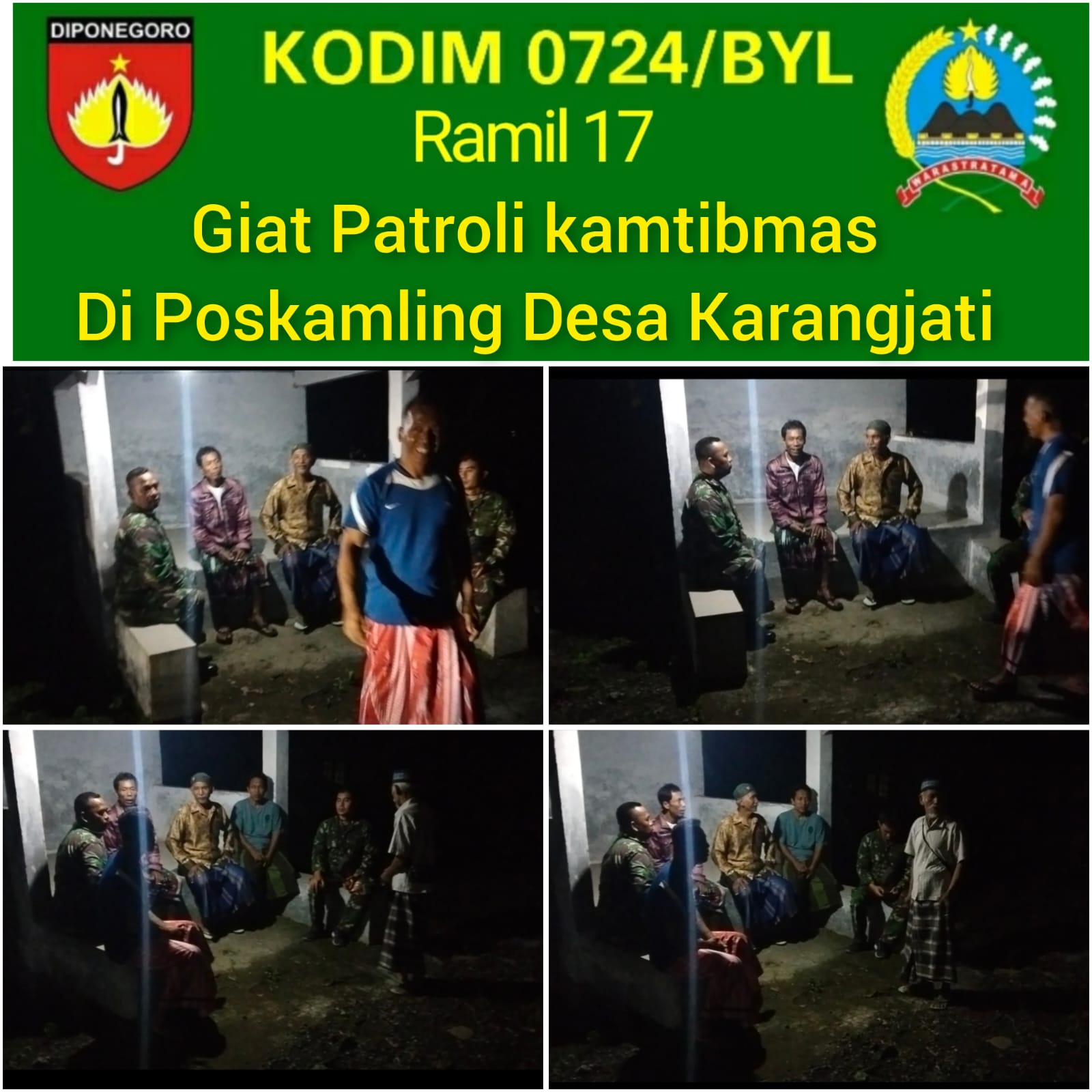 Boyolali — Upaya menjaga keamanan dan ketertiban masyarakat terus dilakukan aparat kewilayahan. Babinsa Koramil 17/Wonosegoro Kodim 0724/Boyolali, Sertu Vera Dani, melaksanakan patroli malam di Desa Karangjati, Kecamatan Wonosegoro, Kabupaten Boyolali, Sabtu (28/02/2026), sebagai langkah preventif menciptakan situasi wilayah yang aman dan kondusif.